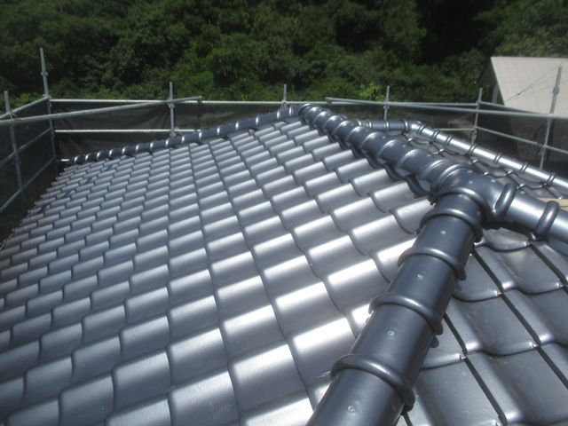 今回の工事では、既存の陶器瓦屋根から新しい陶器瓦への葺き替え工事を行いました。 瓦屋根は耐久性に優れた屋根材ですが、棟部分の施工方法や下地の劣化状況によっては、地震時のズレや崩れのリスクが高まることがあります。 そこで今回は、耐震性の向上を目的として、棟部分を7寸丸1本伏せによる強力棟仕様で施工しました。従来の施工方法に比べて棟の固定力が高まり、地震や強風時にもズレにくい、安心性の高い構造となっています。 屋根材を新しくするだけでなく、棟の構造まで見直すことで、より長く安心してお住まいいただける屋根に仕上がりました。屋根の葺き替えをご検討の際は、耐震性を考慮した施工方法の選択も重要ですので、お気軽にご相談ください。