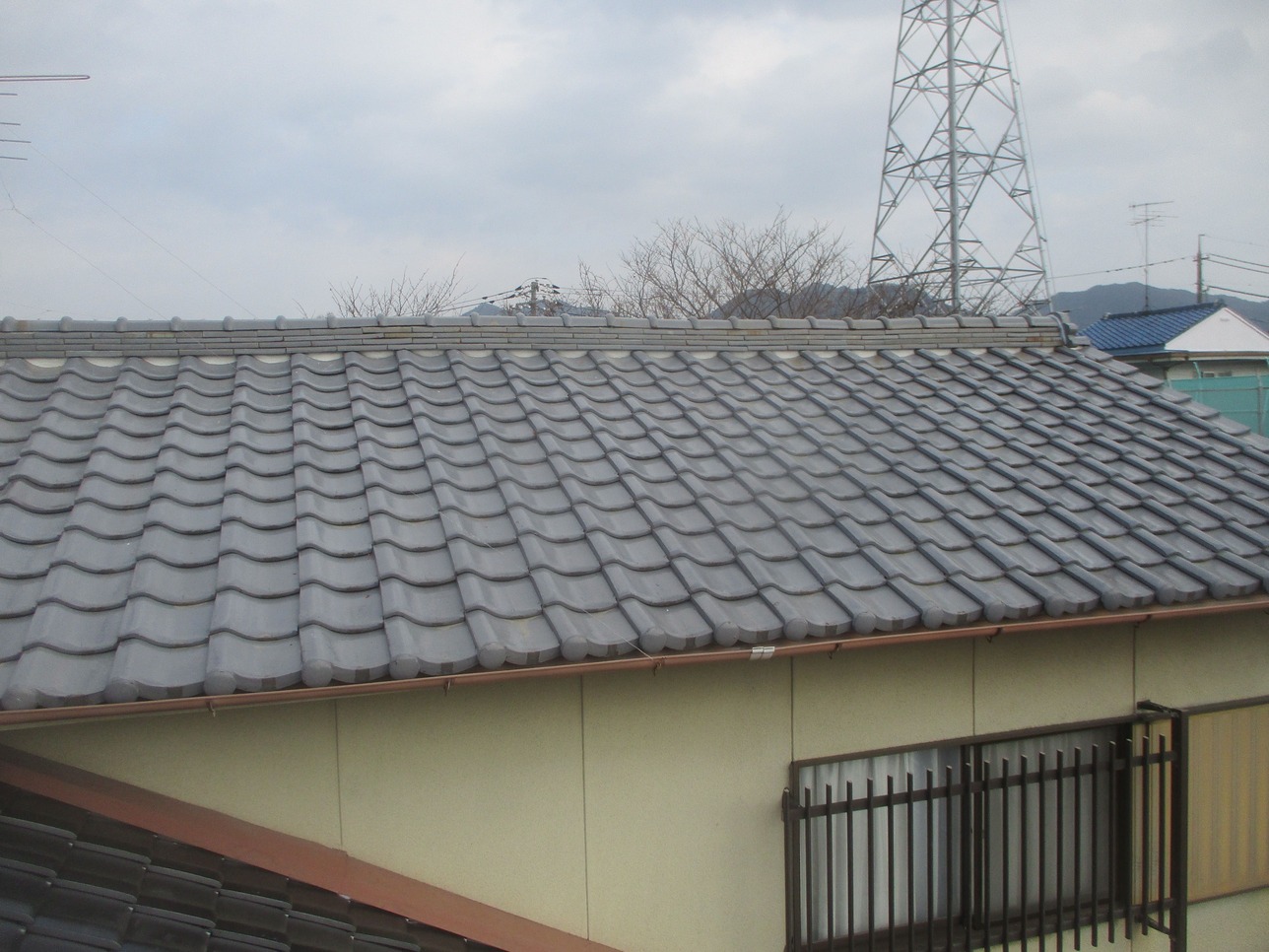 塗装が剥がれ始めていたセメント瓦の屋根を、耐久性に優れた石州瓦のフラットタイプへ葺き替えました。 セメント瓦は定期的な再塗装が必要ですが、陶器瓦に替えることで塗装メンテナンスが不要となり、将来的な維持費を大きく軽減できます。 屋根の塗装や葺き替えでお悩みの方は、早めの点検が住まいを長持ちさせるポイントです。まずはお気軽にお問い合わせください。