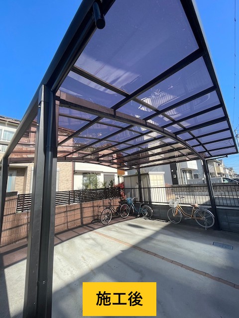 鴻巣市でカーポート屋根交換を行い強風被害で生じたひび割れや穴あきを解消しました
