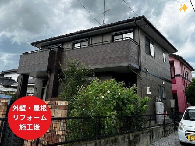 色あせてしまい古く見えていた家が、塗り替え後はとてもきれいな印象に。 屋根の色が変わるだけで家全体が明るく感じられ、大満足です。