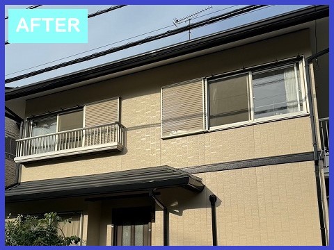 越谷市で、外壁塗装工事を行った様子をご紹介します。依頼主様は、外壁のくすみや劣化が気になってきたのでメンテナンスをお考えでした。無料調査の後、コーキング補修を行い、外壁および軒天、雨樋や雨戸といった付帯部を塗装しました。