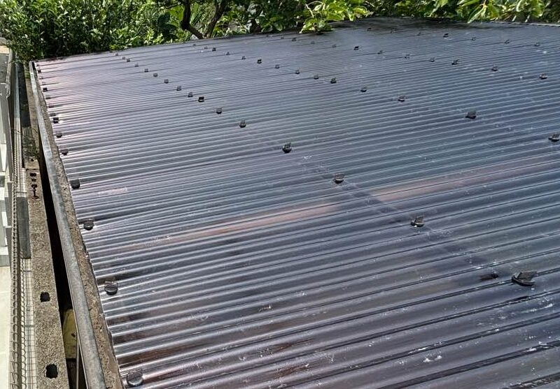 既存の波板を撤去し、フレームの清掃を行います。