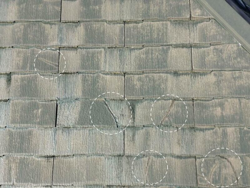 屋根全体に無数のひび割れが発生しており、いつ新しい欠片が落ちてきてもおかしくない状態でした。