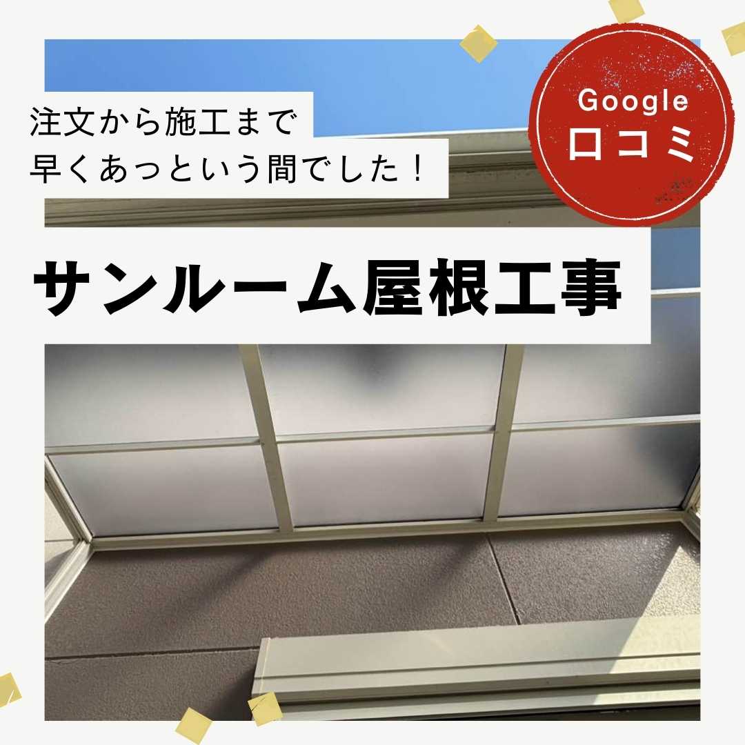 サンルームの屋根が劣化し取り替え工事お願いしました。 注文から施工まで早くあっという間でした。 価格も町内の業者に相見積もりし、圧倒的に住みたかルーフさんが安かったです。