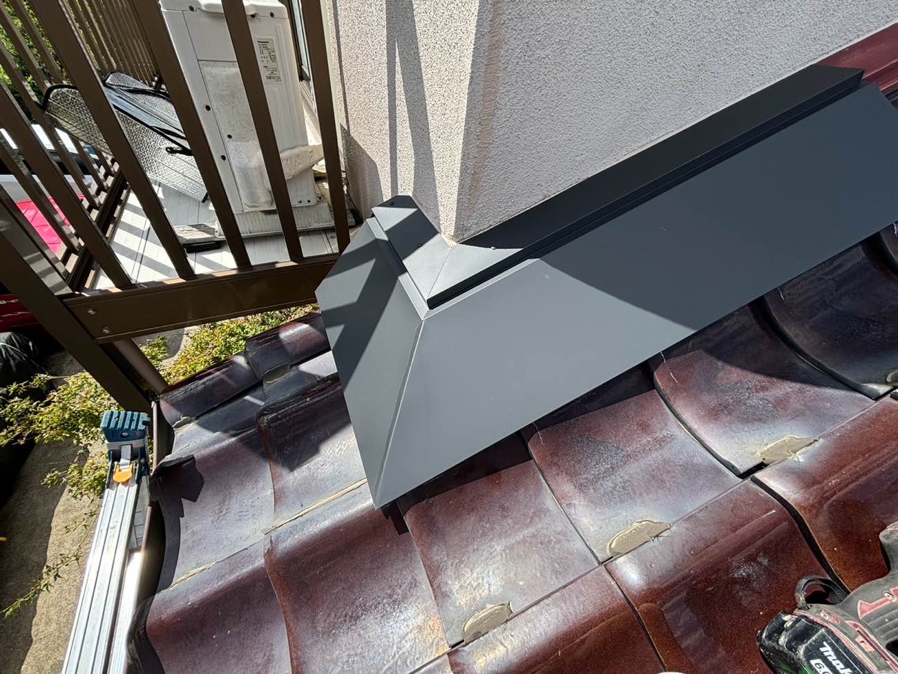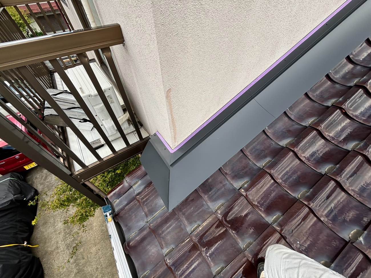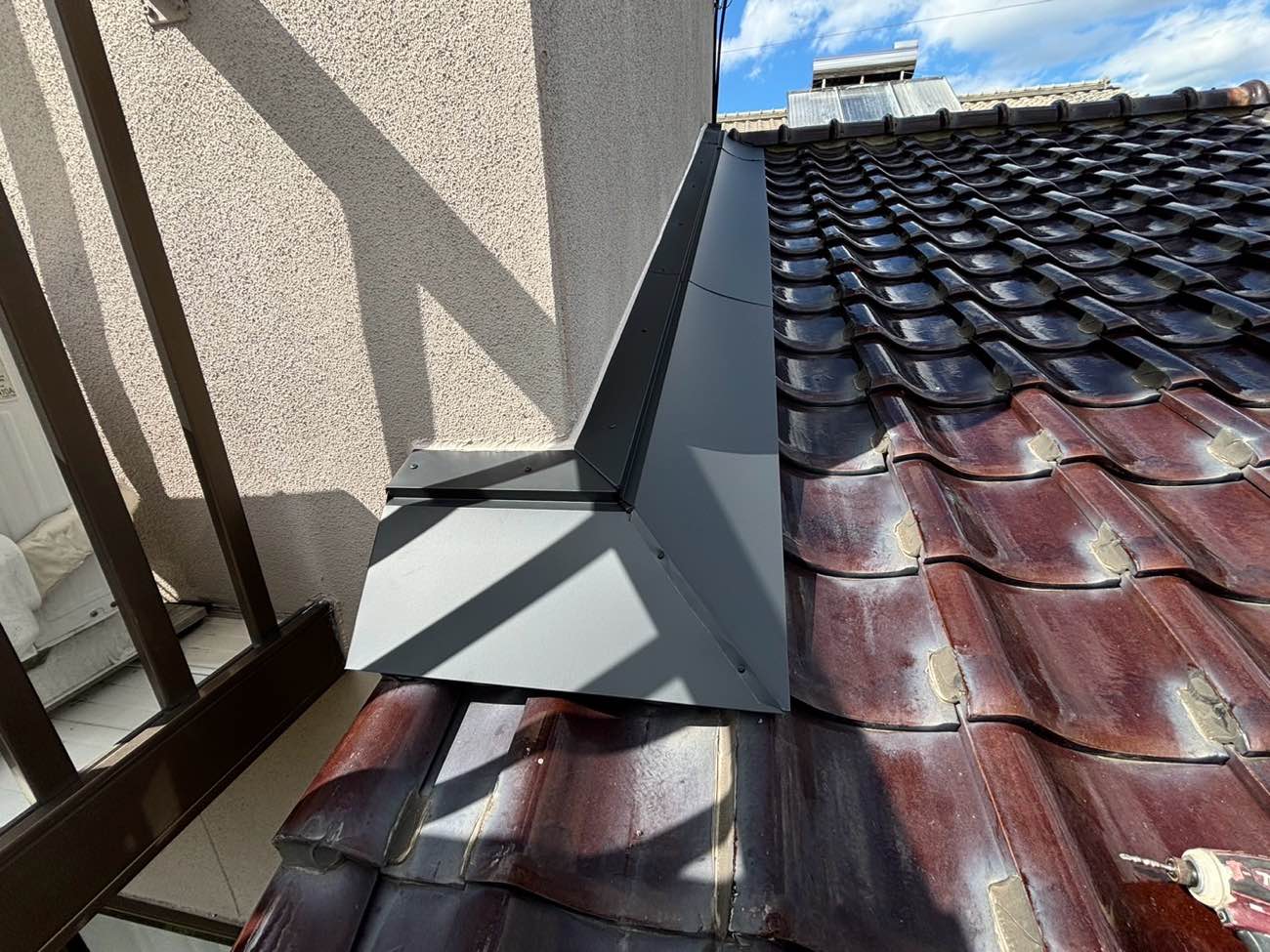 | 工事内容 | 和室の天井に発生した雨漏りを解決するため板金カバー工事を実施しました。 雨漏りはエアコンの付近で発生しており、漏電の危険性もありました。 雨漏り原因は、屋根と外壁の取り合い部分から雨水が侵入していることでした。 上から新しく板金を重ねて雨水の侵入を防ぐ工事を実施しました。 |
