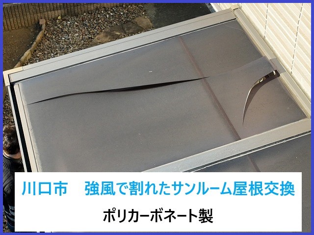 川口市 強風で割れたサンルーム屋根を交換!ポリカーボネートの魅力とと火災保険のポイント!