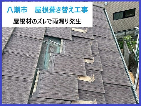 八潮市 屋根材のズレが原因で雨漏り発生!屋根葺き替え工事と和室天井張替えで安心を取り戻した施工事例