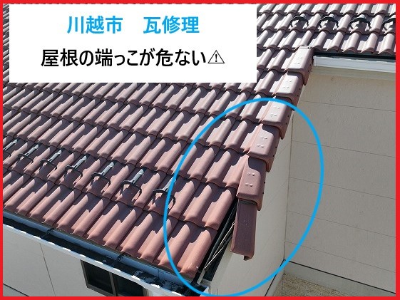 川越市 瓦修理!屋根の端っこが崩れてる!?ケラバ瓦が落下寸前だった危険な状態を緊急修理
