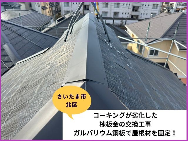 さいたま市北区 コーキングが劣化した棟板金の交換工事~ガルバリウム鋼板で屋根材を固定!