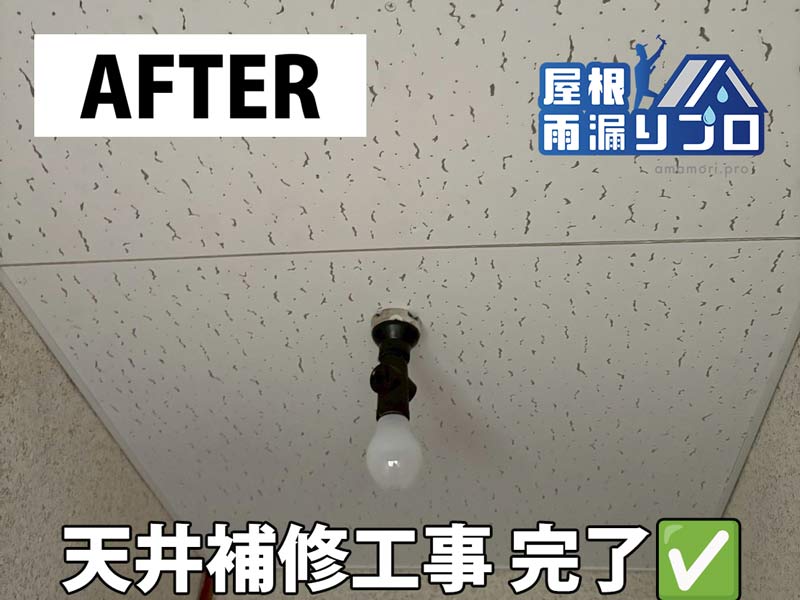 雨漏りの影響で劣化していた天井を、ジプトーン(化粧石膏ボード)に張り替えて補修しました🔧 天井を新しくすることで、室内の印象も改善し、安心して使用できる状態になっています✨