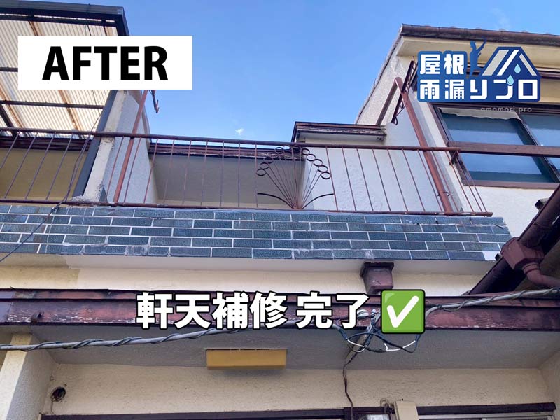 この度は、不動産会社様より管理物件の工事をご依頼いただき、誠にありがとうございました。 玄関天井の雨漏りについては、原因となっていたベランダ防水の劣化箇所を適切に処置し、防水工事を行うことで漏水を解消しています。あわせて、雨水の影響を受けていた軒天および室内天井の補修も実施し、使用上・見た目の両面で改善を図りました。 また、点検の過程で確認できた瓦のズレや漆喰の傷みについても、今後の不具合を未然に防ぐため補修を行っています。 当社では、目に見える症状だけでなく、その原因や将来的なリスクも踏まえた施工を大切にしております。今後の管理物件の維持管理や定期点検についても、お気軽にご相談ください。施工後のフォローについても、責任をもって対応いたします。