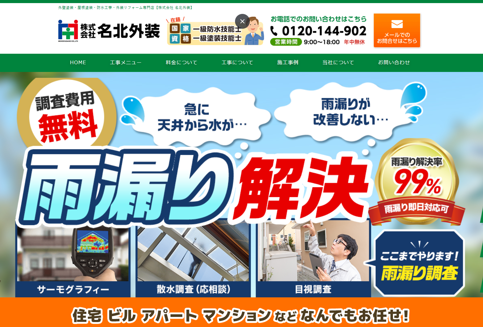 | 対応可能な内容 | 各種防水工事 塗装工事全般 外壁屋根工事 エクステリア工事 内装工事 |