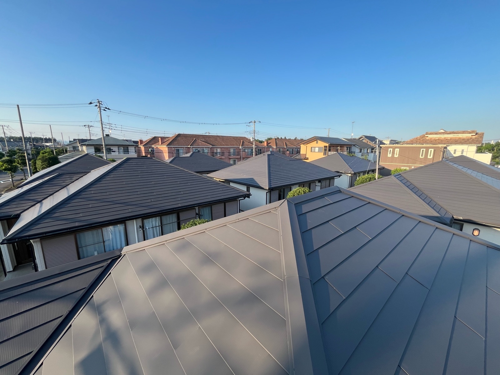 今回は屋根カバー工事の施工事例をご紹介します。 既存の屋根は経年劣化により色あせや防水性能の低下が見られたため、既存屋根を活かしたカバー工法にて新たに屋根を施工しました。 工事の流れとしては、 ・既存屋根の点検・下地確認 ・ルーフィング(防水シート)施工 ・ヒランビー葺き の順で丁寧に施工しております。 また、屋根工事により防水性・耐久性の向上だけでなく、外観もスタイリッシュな印象へと一新されました。 【ヒランビーとは】 軽量で高耐久な金属屋根材で、既存屋根の上から施工可能なため、建物への負担を抑えながらリフォームが可能です。 シンプルでフラットなデザインが特徴で、耐候性・防水性にも優れており、長く安心してお住まいいただける仕上がりとなりました。