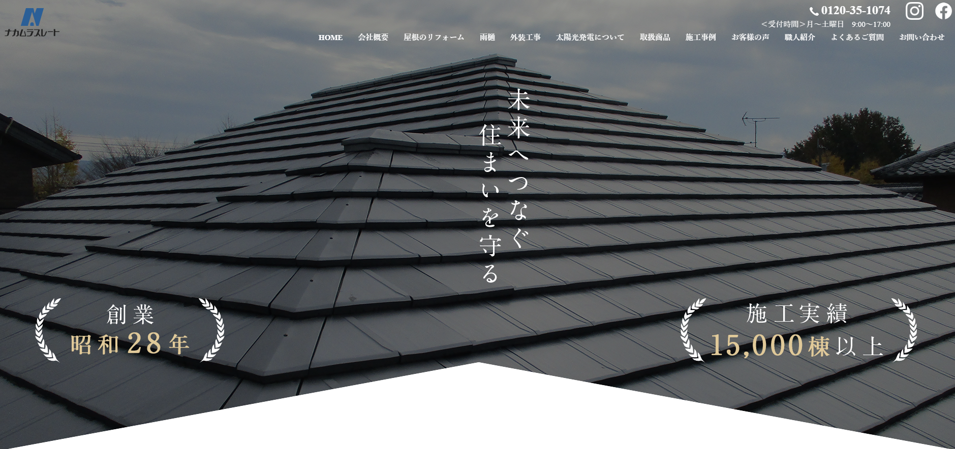 株式会社ナカムラスレートは、屋根工事を中心に住まいを守り続けてきた会社です。確かな技術と誠実な対応で安心・安全を届けるとともに、最新工法や太陽光発電にも取り組み、未来につながる住まいづくりを行っています。