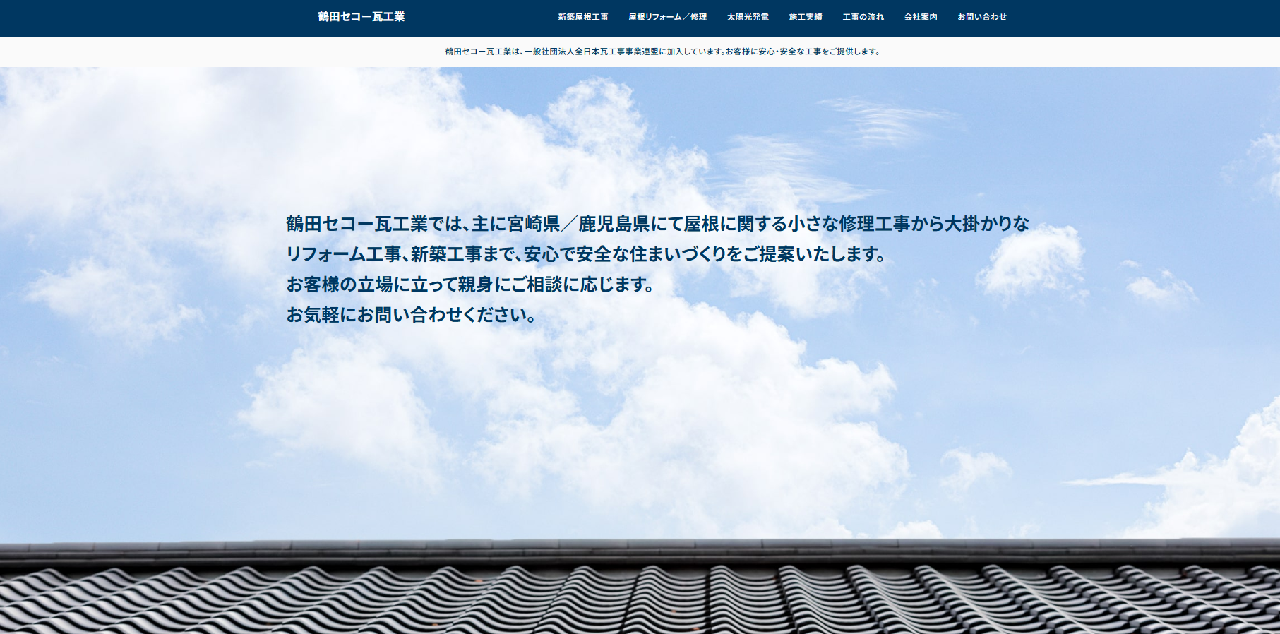 鶴田セコー瓦工業は、一般社団法人全日本瓦工事事業連盟に加入しています。お客様に安心・安全な工事をご提供します。