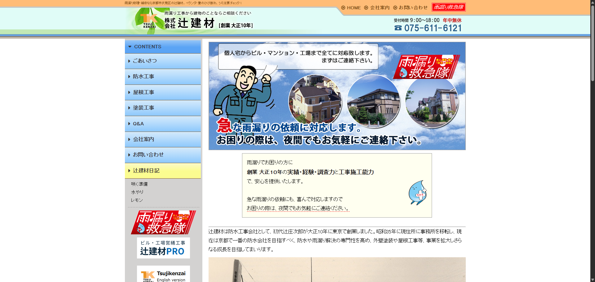 屋根、外壁、樋など建物まわりの相談は、まずは電話またはメールで問い合わせできます。