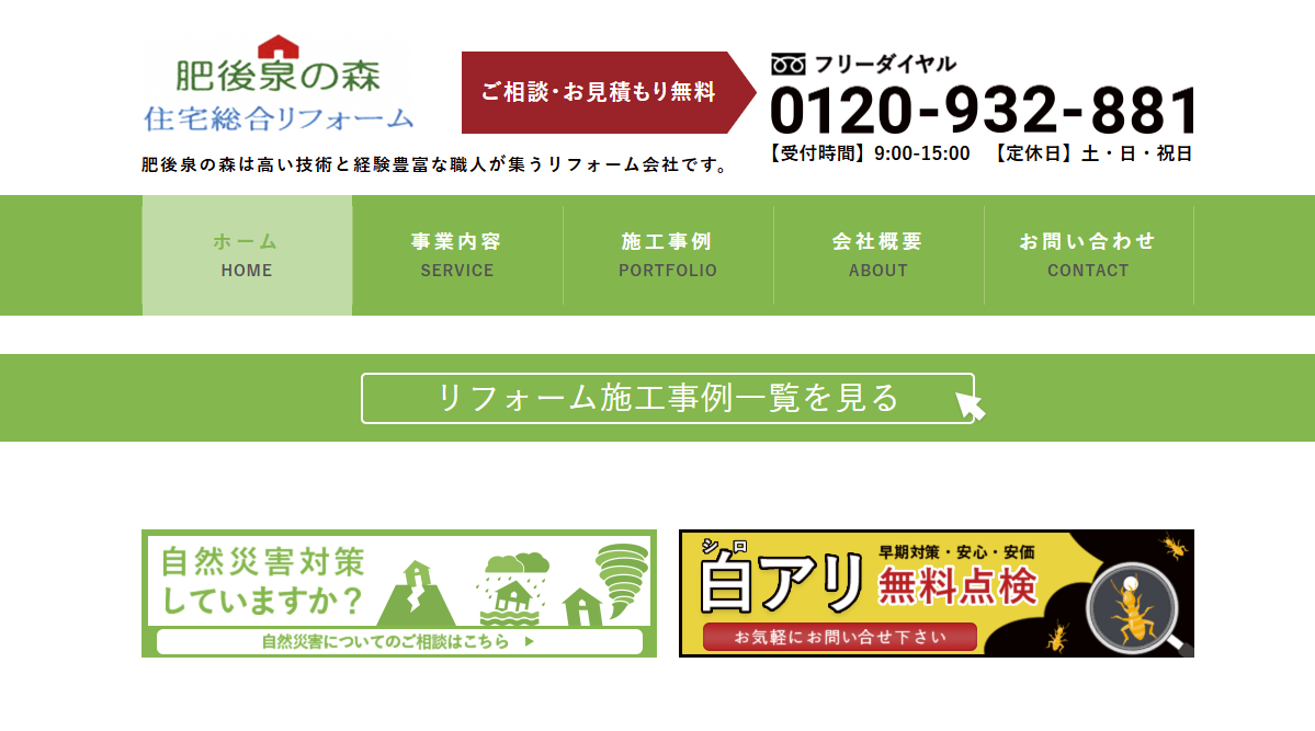 建築会社の下請工事事業者としてリフォーム一筋30年。 的確な施工に適切な評価をいただき、また個人のお客様はじめ多くの業者様から声を掛けていただき感謝しております。 この度仲間である多くの個人事業者の協力を得て、職人・一人親方の代表として平成26年8月6日に住宅総合リフォームの『株式会社肥後泉の森』を設立しました。弊社はお客さまの満足を第一に、安心、安全、快適な暮らしを提供いたします。 今後益々努力いたしますので、よろしくお願い申し上げます。