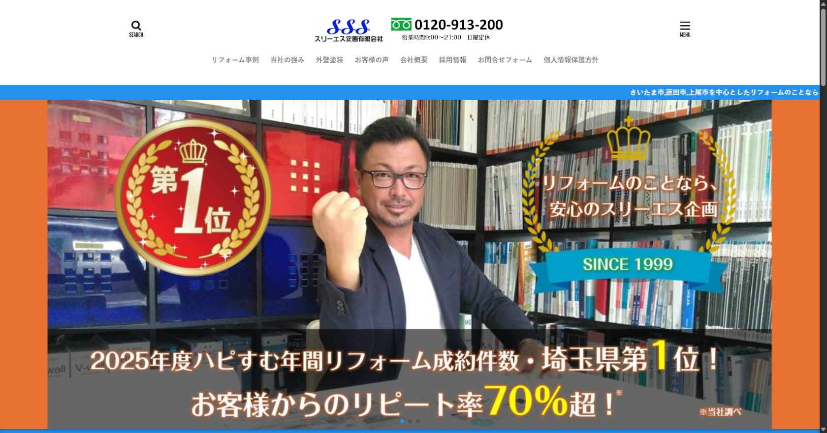 桶川市を拠点に、屋根工事・外壁塗装・内装工事・太陽光発電設置などを手がけるリフォーム会社です。年間550棟以上の施工実績があり、経験15年以上の専門スタッフによる現場目線の提案を強みにしています。