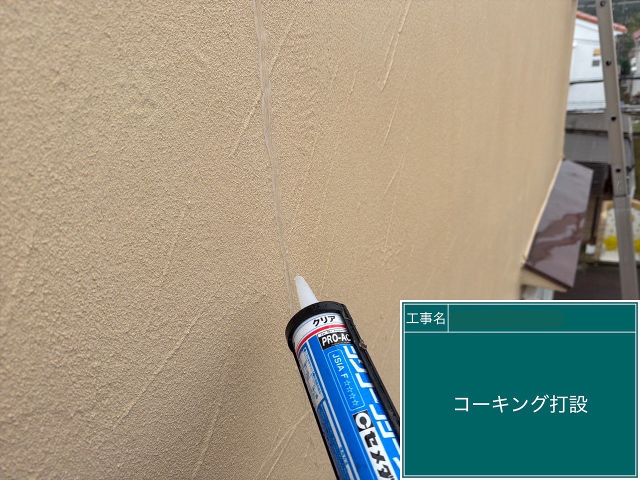 ひび割れに沿ってコーキング材を充填し、防水性を高めます。