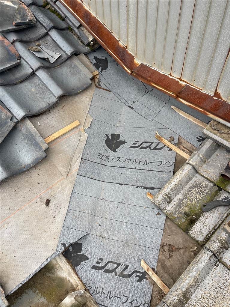 補修箇所周辺の瓦を取り外し、下地の状態を確認します。