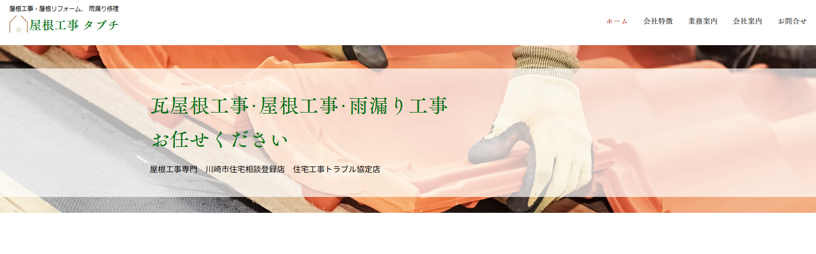 川崎市を拠点に活動する「屋根工事 タブチ」代表です。 私たちは地元密着の屋根修理・瓦工事専門店として、一軒一軒のご不安に真摯に向き合ってまいりました。神社仏閣の修繕も手掛ける確かな技術を活かし、一般住宅の小さなお困りごとから全面改修まで、完全自社施工で責任を持って承ります。住まいの要である屋根を守り、地域の皆様に「タブチに頼んで良かった」と笑顔になっていただくことが、私たちの何よりの喜びです。