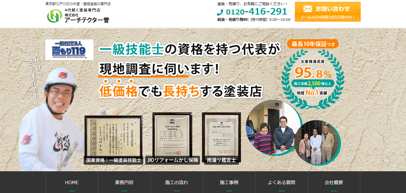初めまして、代表の田中洋介です。曽祖父の代から110年続く塗装一筋の家系に生まれ、工業高校建築科卒業後この道へ進みました。祖父から技術と志を受け継ぎ、「お客様のために全力を尽くす」ことを信条に、江戸川区・葛飾区を中心に丁寧な施工を行っております。大切なお住まいを安心してお任せください。
