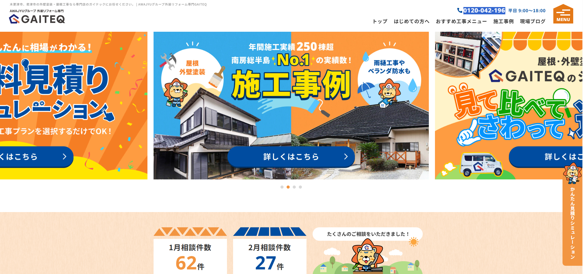| 対応可能な内容 | 屋根カバー 屋根葺替え 外壁塗装 屋根塗装 雨漏り修理・雨樋交換 漆喰工事 その他 |