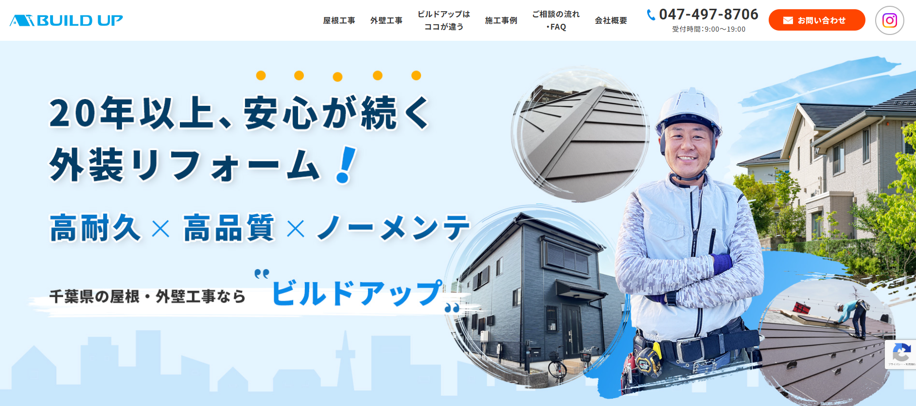 千葉県に根差し、地域の皆様の大切なお住まいを守り続けてきたビルドアップです。 屋根や外装のトラブルは、お客様にとって大きな不安を伴うものです。だからこそ私たちは、迅速かつ誠実な対応を第一に、妥協のない「確かな施工」をお届けすることをお約束します。社名の通り、信頼を一歩ずつ積み上げ、お客様の笑顔を築いていくことが私たちの喜びです。 住まいの主治医として、どんな小さな悩みも安心してお任せください。