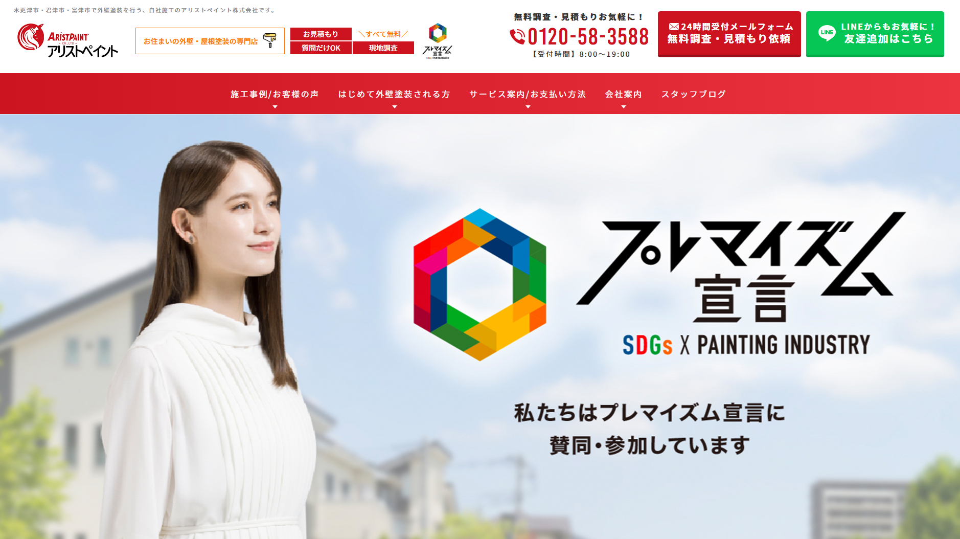 アリストペイント株式会社は木更津市や君津市、富津市を中心に、戸建てやアパート、店舗の外壁塗装、屋根塗装を行っている会社です。 こちらでは、当社代表からの挨拶や、会社概要、アクセスマップ、個人情報保護方針についてご案内します。アリストペイントは地域で愛される塗装店として、お客様のご要望に沿った適切な塗装の提供に努めています。高品質でリーズナブルな施工は、アリストペイントにおまかせください。