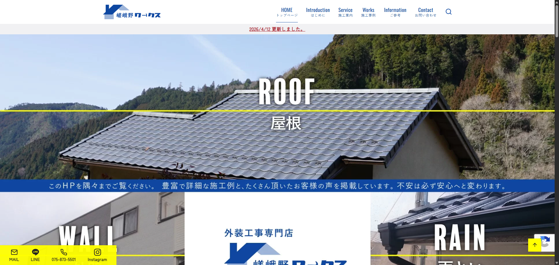 京都市山科区を拠点に、リフォーム工事、増改築、新築工事、外壁サイディング、防水工事、外構・エクステリアなどを手がける会社です。外壁・屋根カテゴリの施工事例も掲載されています。