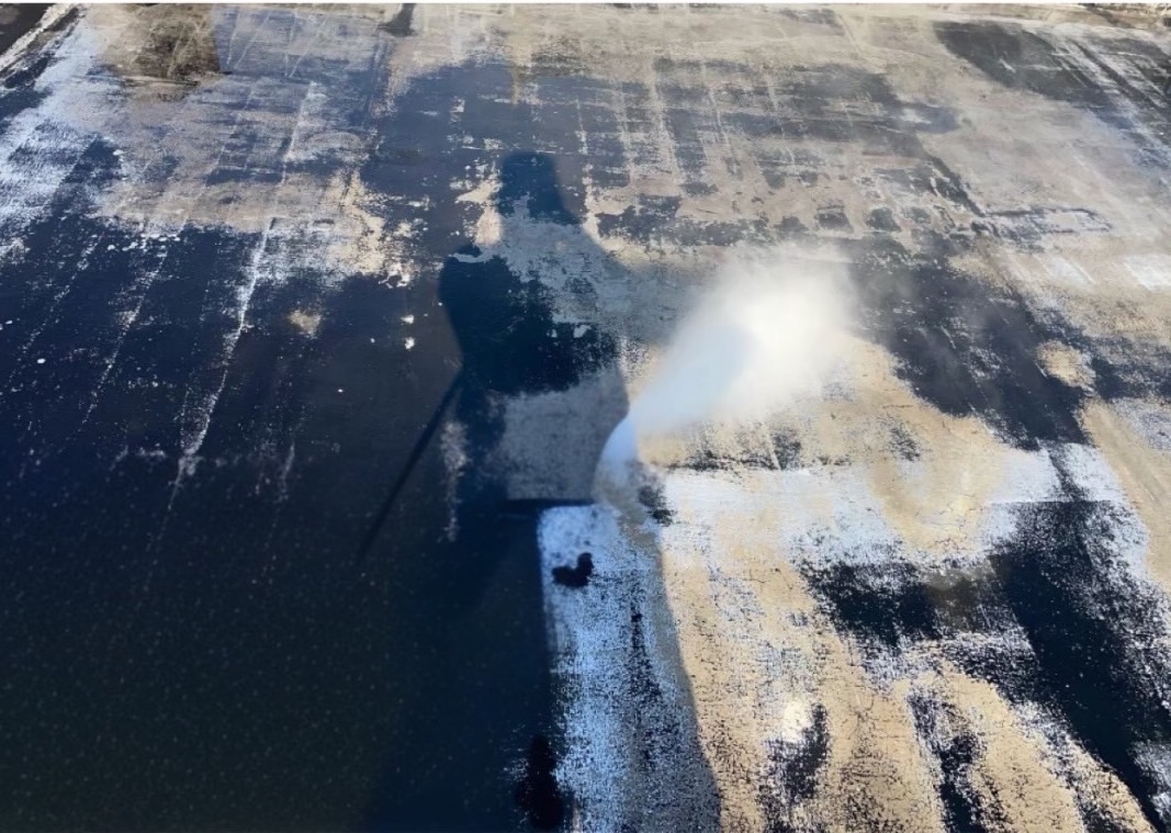 既存防水層の劣化が進行していたため、下地調整を行ったうえでウレタン防水工事を実施しました。 防水材を重ね塗りし、トップコートまで仕上げることで、屋上全体の防水性能を回復させています。