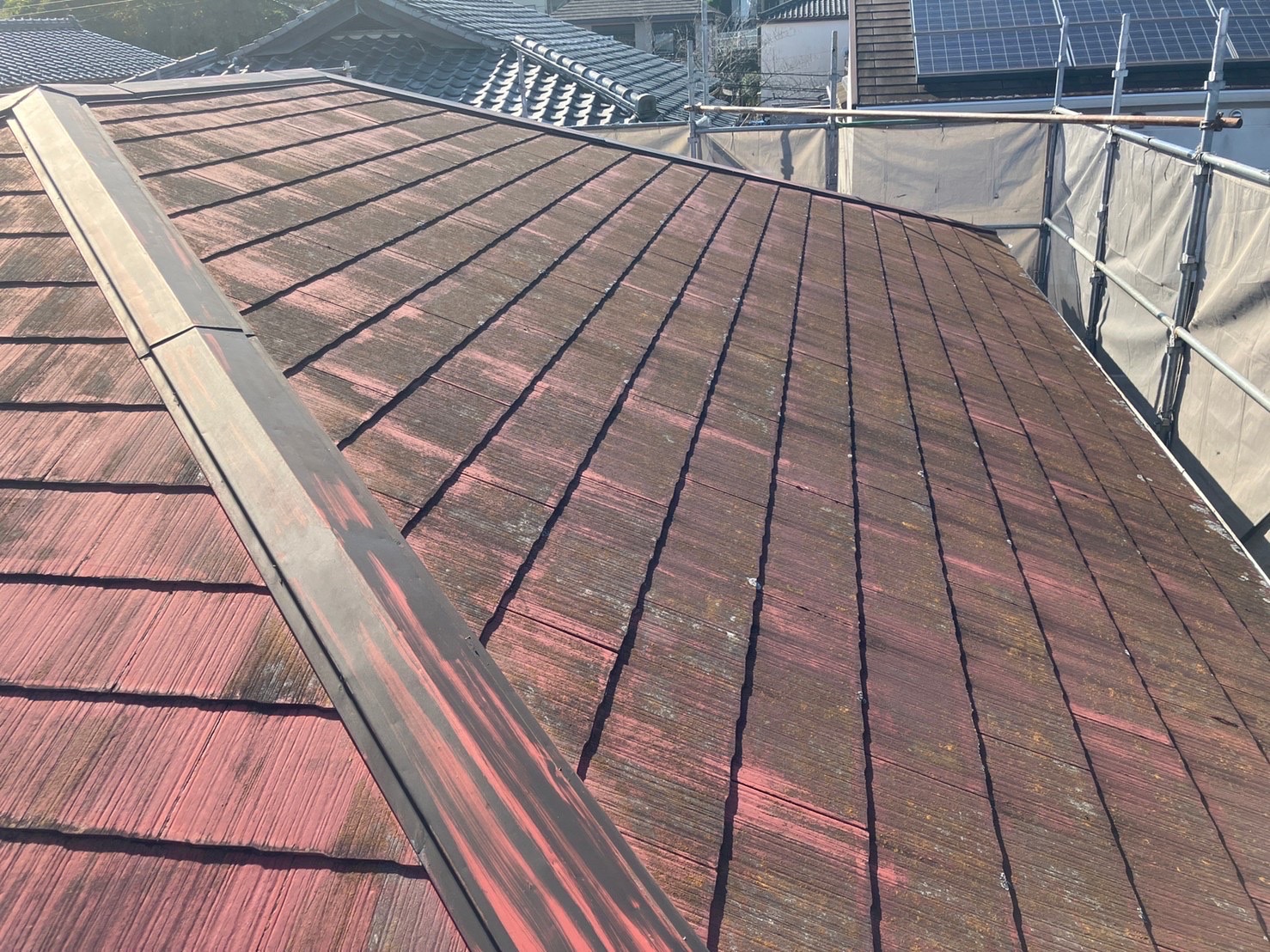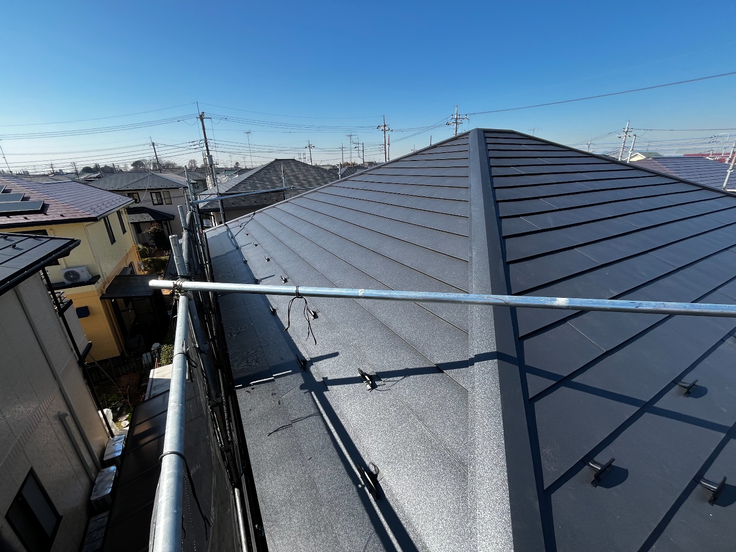 今回は屋根カバー工事の施工事例をご紹介します。 既存の屋根は経年劣化により色あせや防水性能の低下が見られたため、既存屋根を活かしたカバー工法にて新たに屋根を施工しました。 工事の流れとしては、 ・既存屋根の点検・下地確認 ・ルーフィング(防水シート)施工 ・スーパーガルテクト葺き ・太陽光パネルの復旧設置 の順で丁寧に施工しております。 また、既存の太陽光パネルは一度取り外し、屋根施工後に再設置することで、屋根の防水性をしっかり確保しています。 機能性の向上はもちろん、外観も美しく仕上がりました。 【スーパーガルテクトとは】 軽量かつ高耐久な金属屋根材で、建物への負担を軽減しながら、優れた断熱性・防水性を発揮します。 また、カバー工法にも適しており、既存屋根を撤去せず施工できるため、工期短縮やコスト面でもメリットがあります。 長く安心してお住まいいただける仕上がりとなりました。