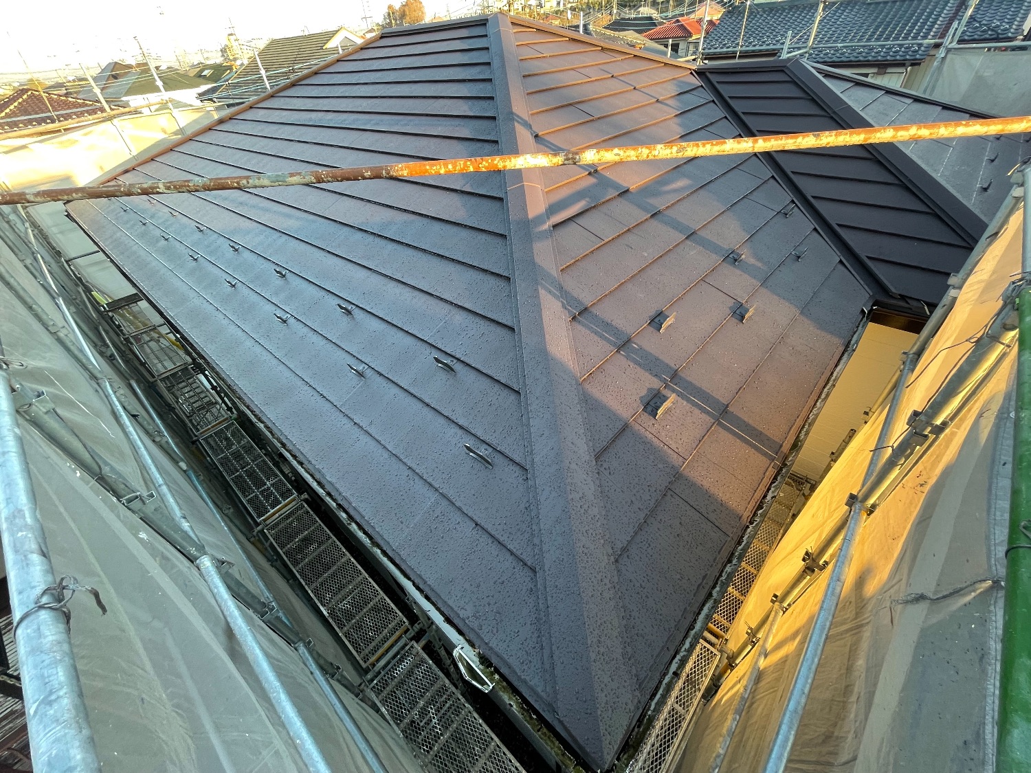 今回は屋根カバー工事の施工事例をご紹介します。 既存のコロニアル屋根は、経年劣化により色あせや防水性能の低下が見られたため、カバー工法にて新たに屋根を施工しました。 工事の流れとしては、 ・既存屋根の点検・下地確認 ・ルーフィング(防水シート)施工 ・スーパーガルテクト葺き の順で丁寧に施工しております。 既存屋根の上から施工することで、撤去費用を抑えつつ、防水性・耐久性をしっかり向上させています。 また、屋根全体が落ち着いた色合いに仕上がり、外観も美しく一新されました。 【スーパーガルテクトとは】 軽量かつ高耐久な金属屋根材で、建物への負担を軽減しながら、優れた断熱性・防水性を発揮します。 カバー工法にも適しており、長く安心してお住まいいただける屋根材です。