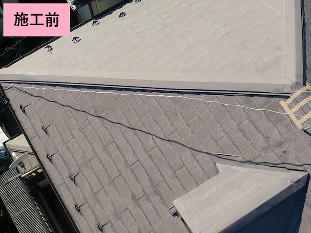 北本市で、スレート屋根の屋根塗装を行った様子をご紹介します。お客様によると、最近飛び込みの訪問業者に棟板金の浮きを指摘されてご心配とのことです。また、メンテナンスをご検討されていたため、屋根塗装、棟板金交換、雨樋交換をご用命いただきました。