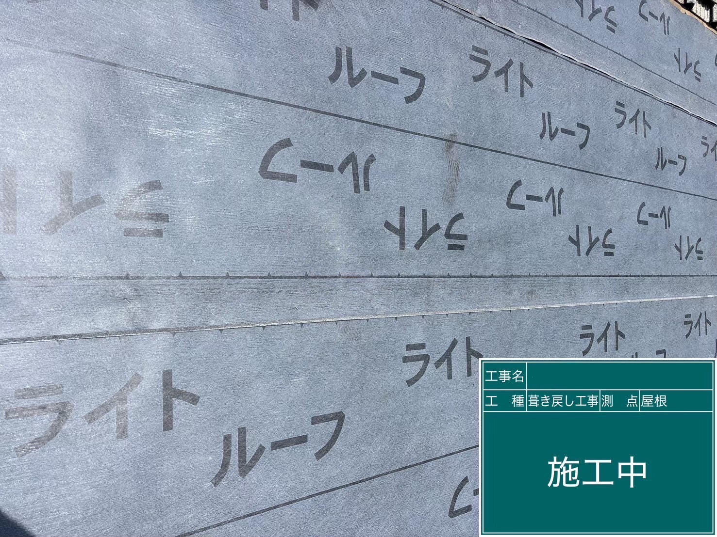 既存屋根材を一部撤去し、劣化したルーフィングを新しい防水シートへ張り替えました。 下地状態を確認しながら、雨漏りリスクの高い箇所を重点的に補修しています。