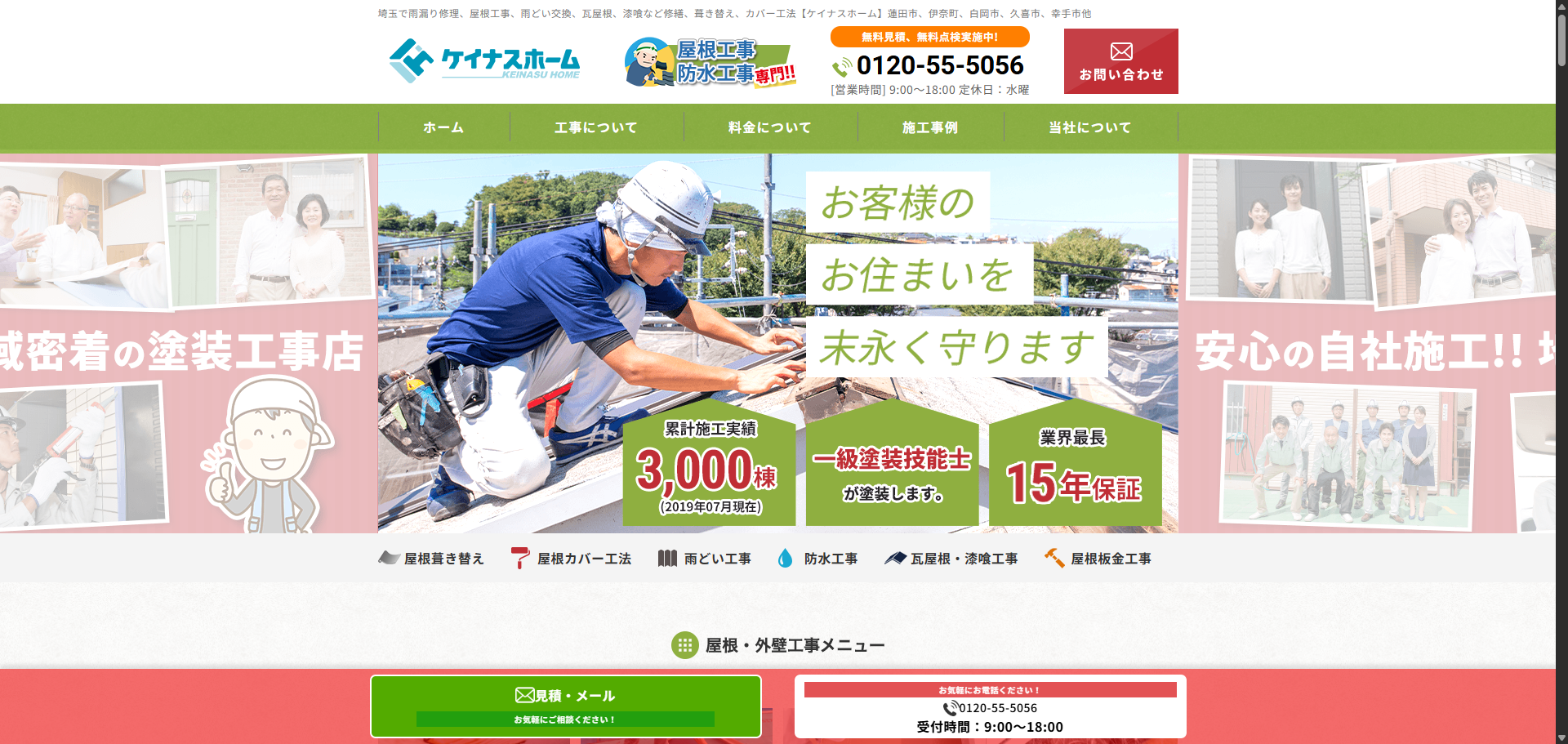 訪問業者に指摘されて不安になり相談しましたが、必要な工事だけをきちんと説明してくださり信頼できました。 仕上がりもとてもきれいで、これで安心して過ごせます。 今後も無料ということなので、定期的に点検をお願いしたいと思います。