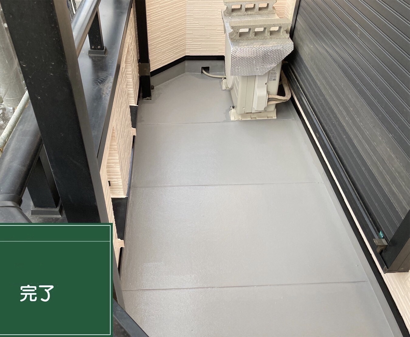 経年劣化により防水機能が低下していたベランダ床面の防水工事を行いました。 下地処理後、プライマー・防水材を塗布し、防水層を再形成しています。 仕上げまで丁寧に施工し、雨水の浸入リスクを解消しました。